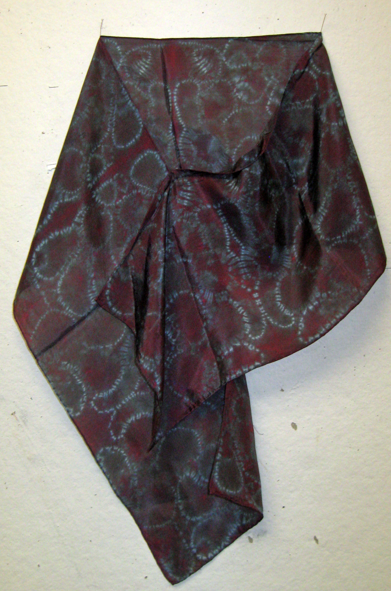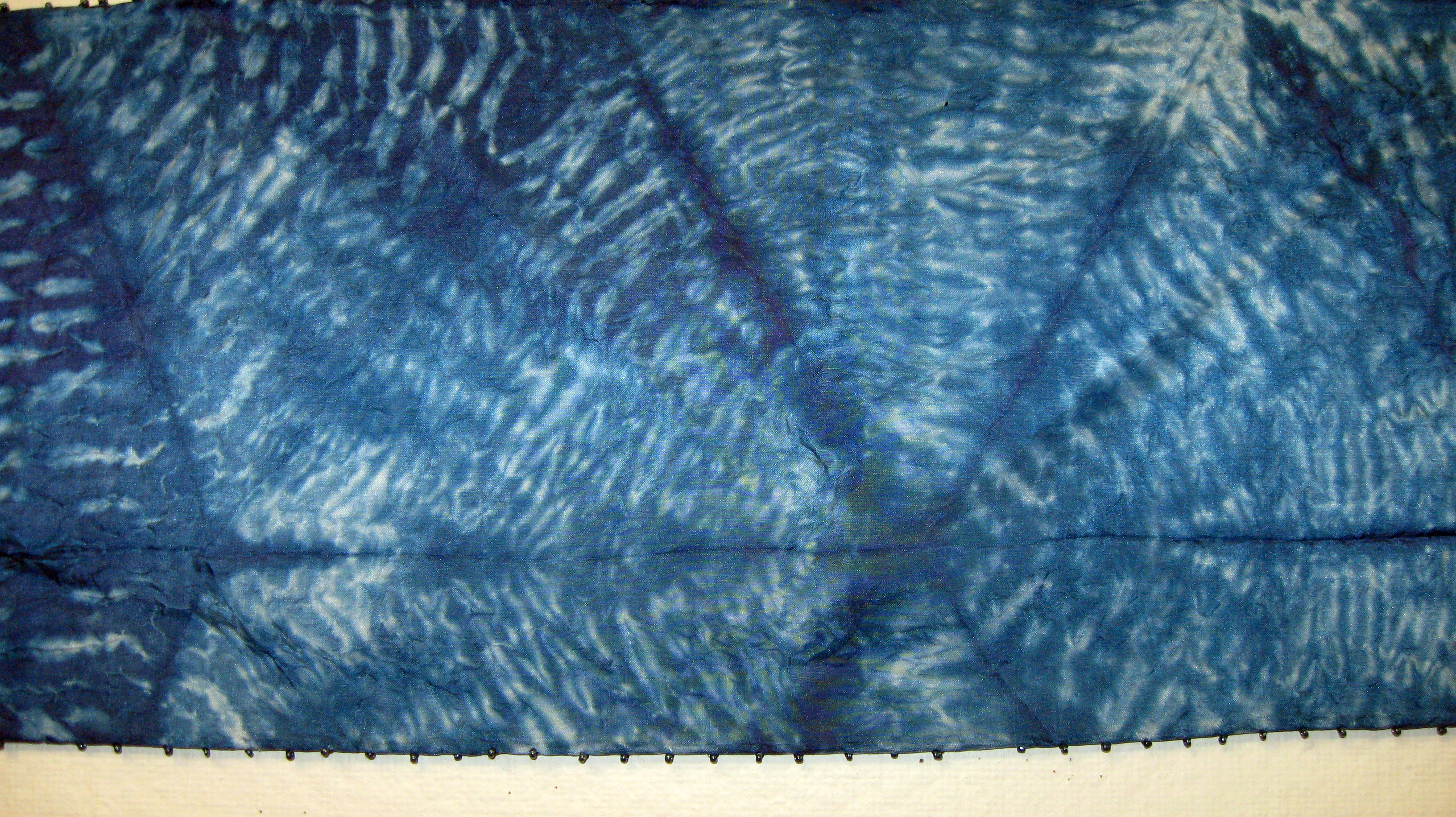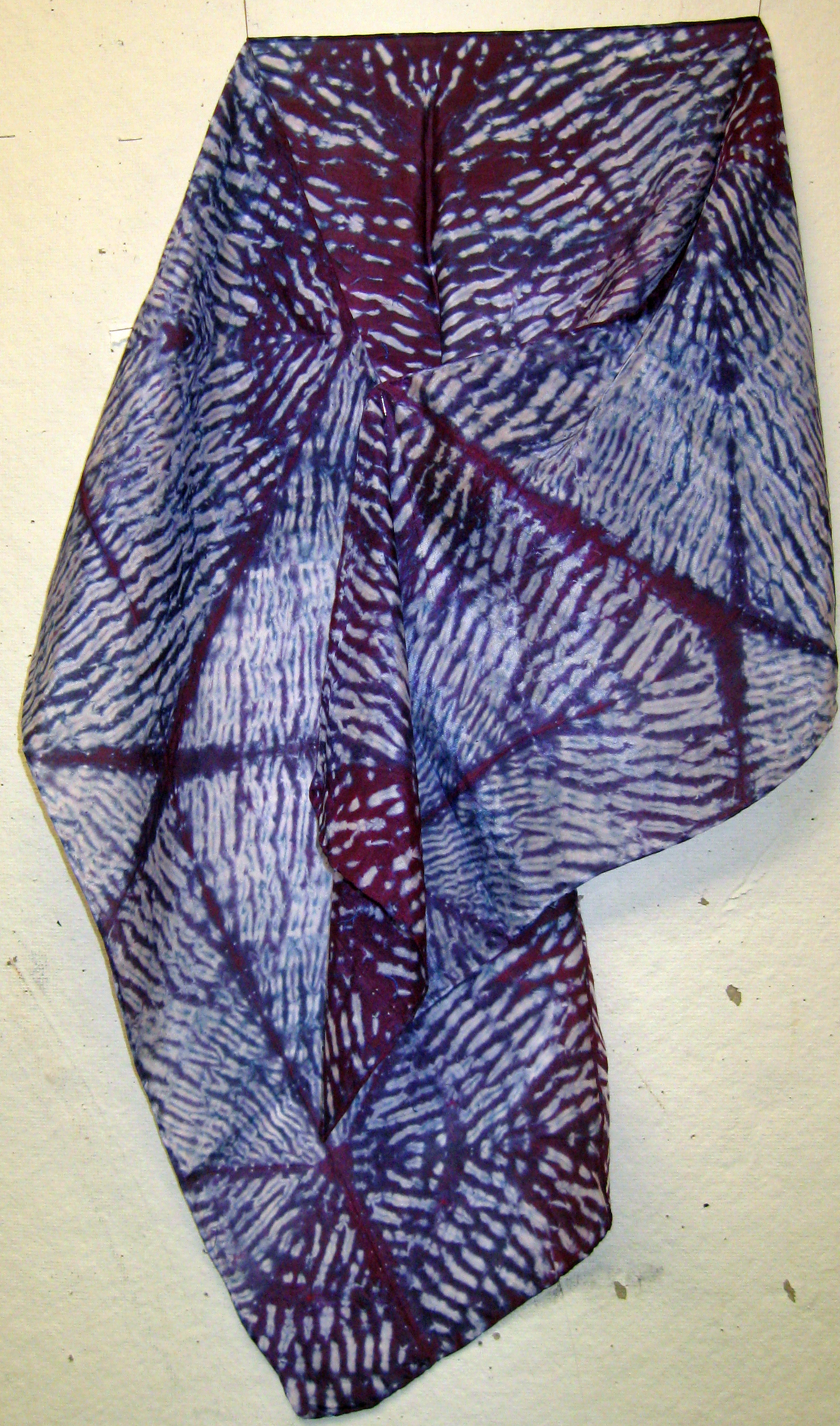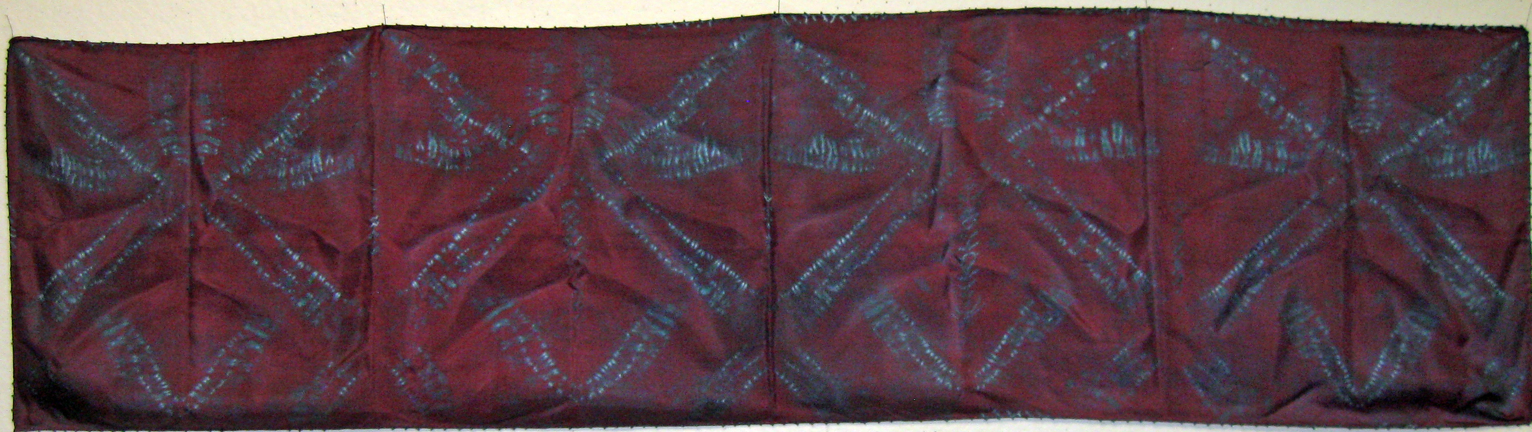 A traditional Japanese fabric art, stitch shibori dyed silkĀ pieces are stitched before dyeing to produce complex and unique patterns. All the pieces below are hand made using high quality haboti silk fabric. If you are interested in any of the pieces below, pleaseĀ contact me.