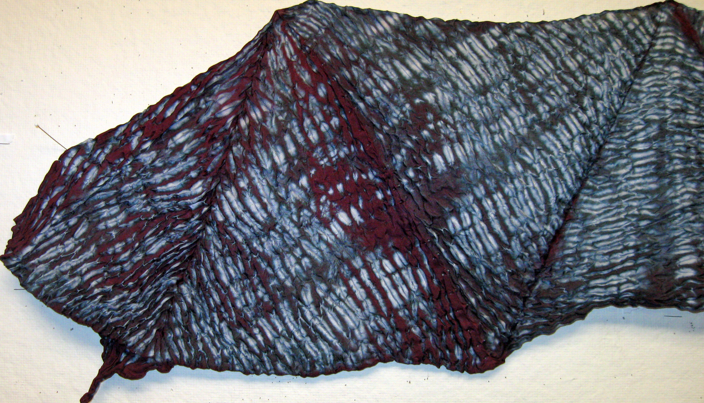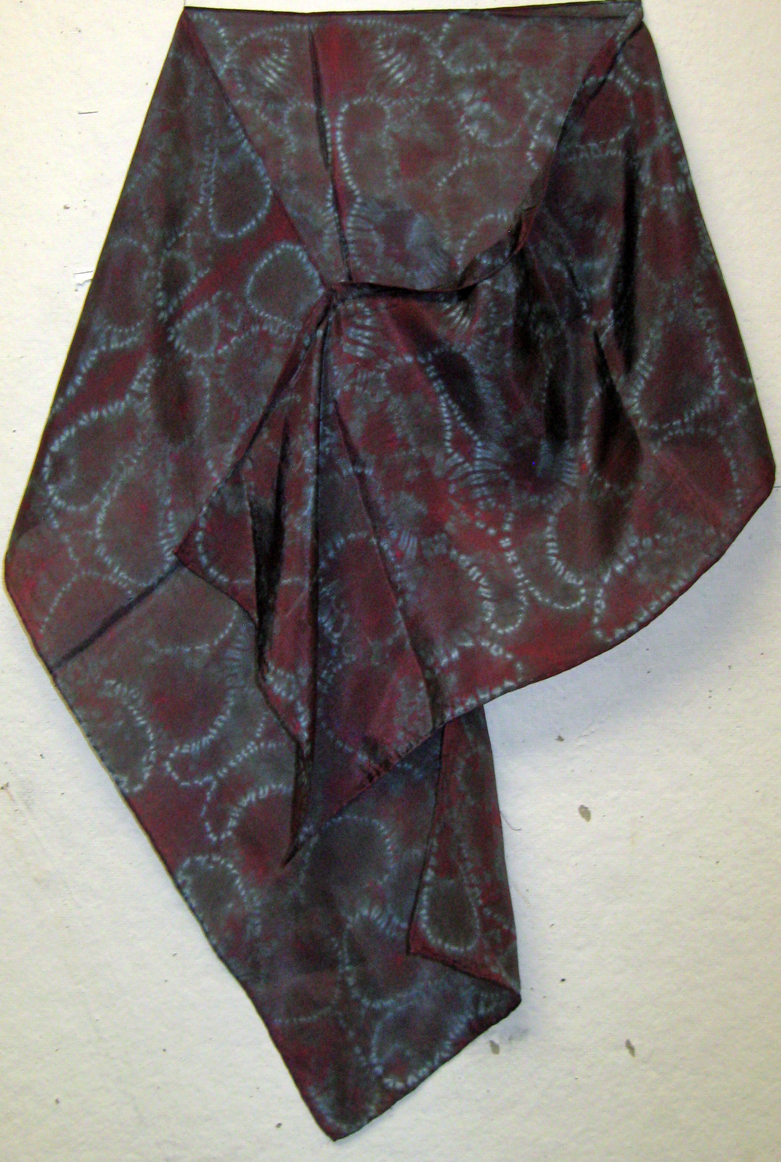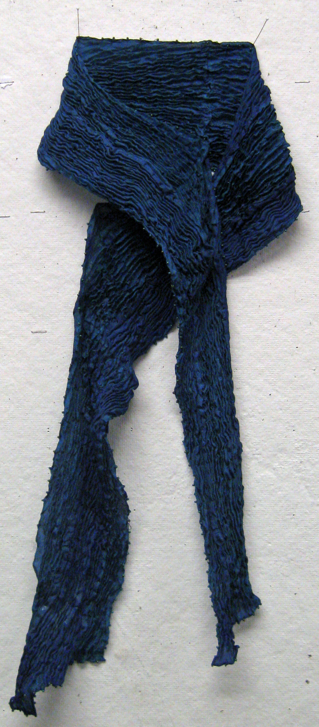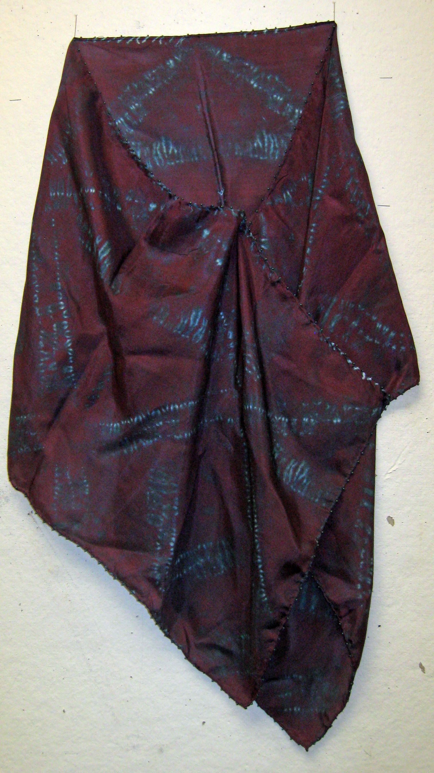 A traditional Japanese fabric art, stitch shibori dyed silkĀ pieces are stitched before dyeing to produce complex and unique patterns. All the pieces below are hand made using high quality haboti silk fabric. If you are interested in any of the pieces below, pleaseĀ contact me.